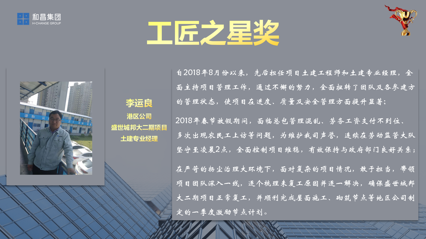 截至2019年4月17日,一季度工程綜合檢查及工匠之星評選完成。