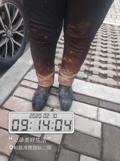 但是55歲張大姐的肩穩(wěn)穩(wěn)在扛,她肩負著57萬方園區(qū)角角落落的消毒工作。作業(yè)過程中的她,得時不時地使勁兒挺一挺腰桿,繼續(xù)行走在消毒的征程。每天如此,周而復始。噴出的消毒液經常像爬山虎一樣,蔓延在她的衣服上,浸透了褲腳,也染紅了衣襟……